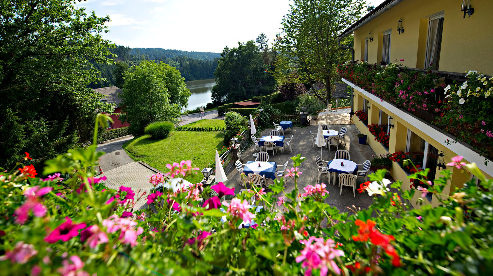 - Genießen Sie Ihr Frühstück auf unserer Sonnenterrasse mit Blick auf den Mitterteich.